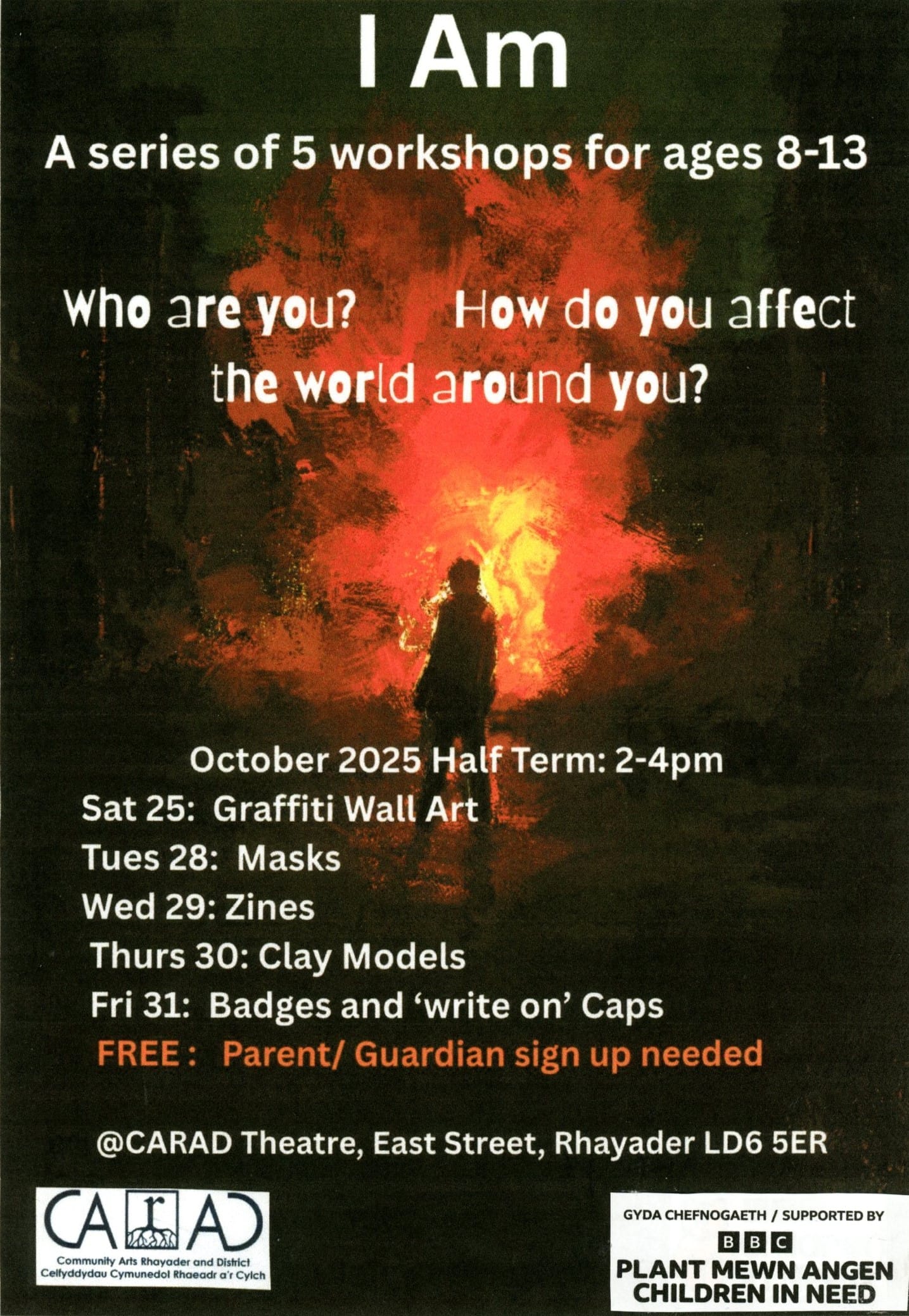 Parents will need to sign their children in, ideally for the course of all five workshops. Please call at 01597810194 to secure your place in the workshops.